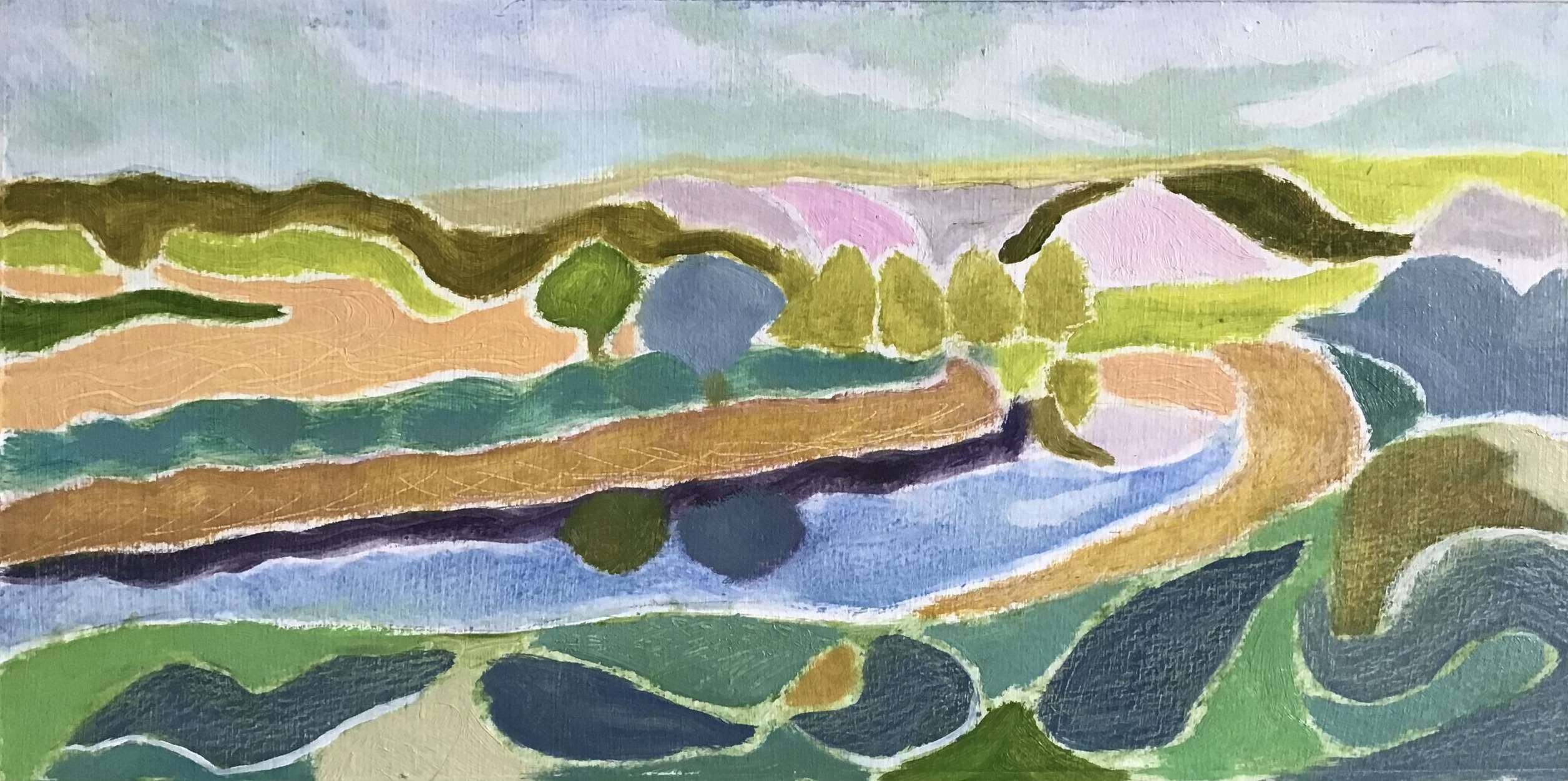 Small experimental abstracted landscape, one of a series 'Railway Land Wildlife Trust, Impressions of Spring' exhibition at Chalk Gallery, Lewes 29 May-23 July 2023